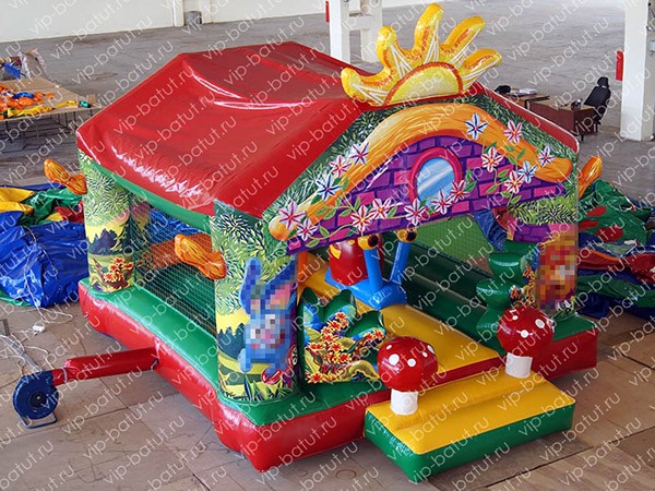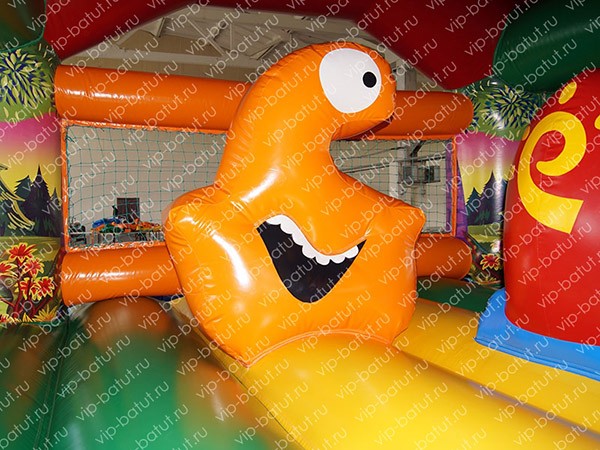 Красочный,современный,детский,игровой батут, готов разместить на своей территории всех желающих, маленьких любознательных карапузов. Мобильный надувной батут привлекает детвору разного возраста на свою игровую площадку, где можно весело прыгать, играть, резвиться с друзьями. Матрасная часть пневмоаттракциона ,наполнена игровыми элементами. Батутная территория развлечений находится в домике с крышей, где можно спокойно и комфортно проводить время в жаркий, летний день. Под крышей сказочного домика интересно, весело, увлекательно проведет свой досуг вся ребятня. Малыши могут представить себя абсолютно в любой роли, у каждого будет своя увлекательная игра на аттракционе. Надувной батут хорошо просматривается, благодаря ярким оградительным перилам с сеткой. Такая модель, отличное решение для успешного развития Вашего прокатного бизнеса. Яркий, привлекательный, надежный и долговечный пневмоаттракцион принесет Вам значительную прибыль. А детворе дополнительное место для развлечений, где они получать не только массу позитива, но и физическое, творческое развитие. На наших горках-батутах, пневмороботах, многофункциональных комплексах всегда много ребят, здесь царит радость и слышен звонкий смех. Надувные батуты от производственной компании Vip-batut, актуальны во всех парках отдыха.