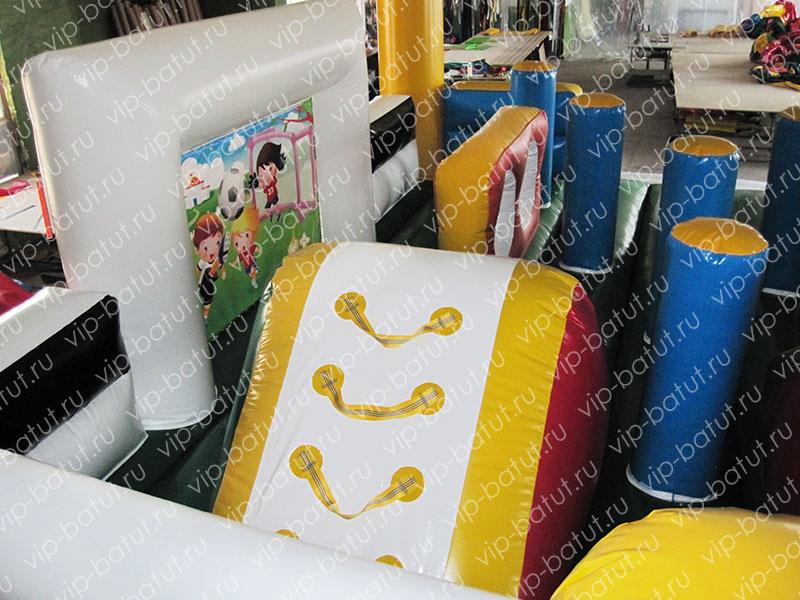 Новый надувной батут от российской компании представляет собой настоящую футбольную площадку со всеми ее составляющими: зеленое поле, белые ворота, веселые футболисты и, конечно же, мяч. Но мы этим не ограничились и наполнили аттракцион всевозможными надувными игрушками. Теперь детишки смогут не только бегать и прыгать на батуте, но и кататься с небольших надувных горок и придумать множество других занимательных игр.