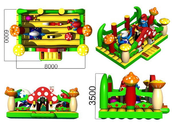 Грибная поляна в центре города! Необычно, ярко и привлекающее внимание. Надувной батут, манит и зовет своих друзей попрыгать и повеселиться на нем. В компании волшебного и добродушного народца. Войдя в большой надувной гриб, с уютными фонариками, малыш оказывается в сказочном мире, на пути встречая злого волшебника, которого можно победить, повиснув на нем, перед этим взобравшись на помощника гриба. Детей приветствует большой, сказочный, синий человечек. Детвора, с радостью сможет полазить по нему, благодаря надувным кубикам на скалолазке. В углу надувного аттракциона, сидит большая надувная кукла, житель «Сказочного мира», на которого можно залезть и получить массу веселья. Сказочный игровой батут для детей, великолепный помощник для поддержания физической формы, активного отдыха детворы на воздухе или в игровых комнатах . Прыгать на батуте, дети не устают никогда. Купить надувной аттракцион для детей, Вы можете, позвонив нам. Владельца он порадует долговечностью, прочностью. Ведь материал, из которого создаются наши надувные комплексы и аттракционы из качественной немецкой ткани. Все материалы обязательно проходят сертификацию и испытание на прочность. И будьте уверенны, надувной батут для детей «Сказочный мир», никогда не останется без посетителей!