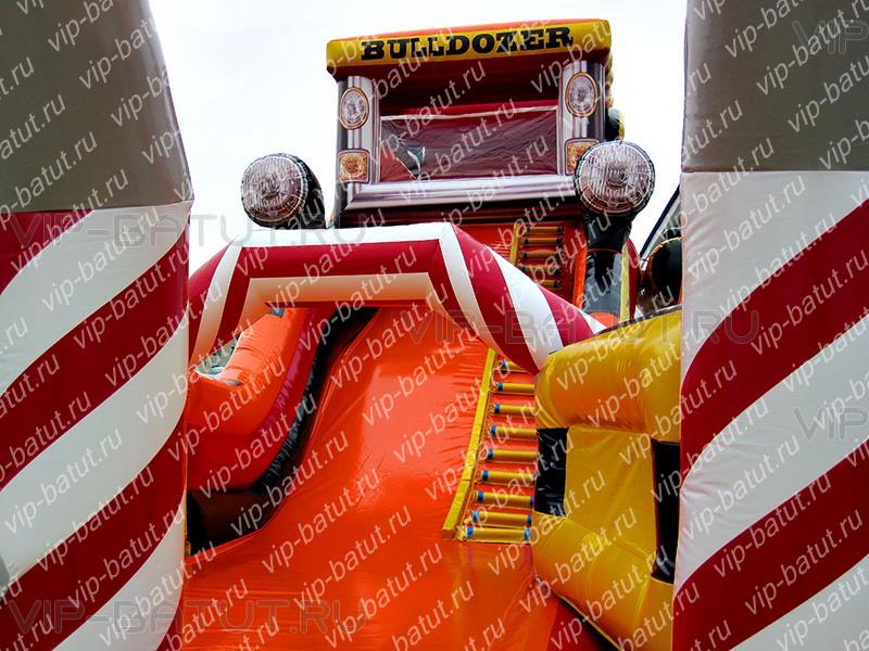 Наша компания не перестает расширять модельный ряд батутной продукции и усовершенствовать уже имеющиеся изделия. Надувная горка с батутом «Бульдозер 5 полноцвет» — эксклюзивная модель, тщательно продуманная и разработанная нашими дизайнерами и конструкторами. Отличительная черта от уже имеющейся модели — наличие качественной полноцветной печати на пвх-ткани, благодаря которой надувная горка смотрится намного выигрышней своей предшественницы. Немецкая пвх-ткань «Mehler», качественные нити, используемые при пошиве батутных изделий, обеспечивают отменное качество выпускаемой продукции. «Vip-batut» выдает годовую гарантию и техническую поддержку своим клиентам. Такая надувная горка с батутом, в виде огромного бульдозера с огромным количеством ярких деталей , не только привлечет внимание посетителей, но и станет достойным украшением любого развлекательного комплекса, сквера отдыха, парков и прочих локаций. Надувная батутная горка имеет волнообразный спуск, что делает скольжение со стартовой высоты прямо в ковш машины еще более увлекательным. Интересующие вопросы по поводу данной модели, а также выяснить технические моменты, Вы всегда можете с нашим экспертом.