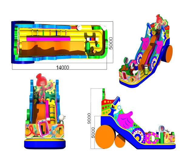 Надувная детская горка прекрасно смотрится,как на уличной площадке, так и в закрытом игровом комплексе.