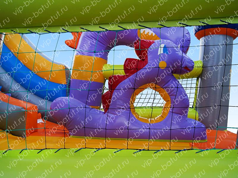 Надувная игрушка в виде забавного маленького дракончика установлена у подножия горки. Малыши очень любят такие «подарочки», на них всегда можно подурачиться между катаниями. Батутная площадка начинается сразу у входа на аттракцион, давая ребятишкам отличную возможность размяться и напрыгаться перед «покорением» вершины.