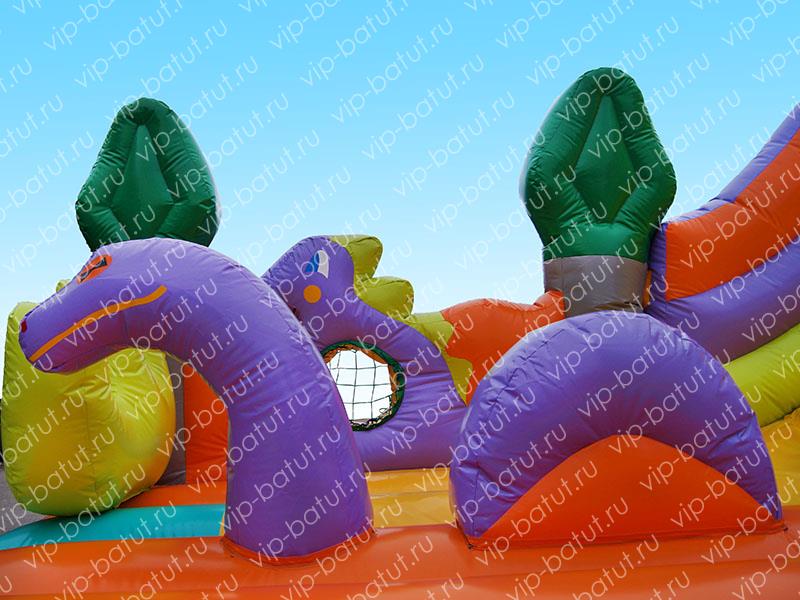 Надувная игрушка в виде морского змея, выныривающего из воды, расположена в центре небольшой батутной площадки у подножья горки. Ребятишки будут в восторге!