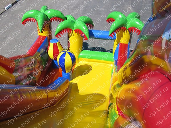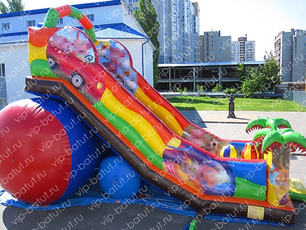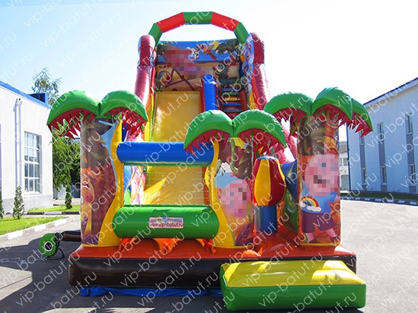 Надувная горка с батутом «Лидер» — одна из новых моделей на нашем веб сайте. Яркий красочный дизайн, достаточно простое, но в то же время функциональное оформление выделяют горку надувную среди других изделий. Тематика полноцветных вставок на батуте, связана с популярным мультфильмом и его героями. Колоритные персонажи обязательно поднимут настроение ребятам. Детская горка имеет пятиметровую стартовую высоту, подъем на нее осуществляется за счет ярких, разноцветных ступенек. На входе на надувной аттракцион стоят пальмы, из под которых выглядывают забавные мульт.герои. Тщательно продуманный конструктив, является полностью безопасным для ребят. Также надувная горка с батутом для детей имеет игровое наполнение. Вся наша продукция выполнена из высокопрочной пвх-ткани, обладает повышенной износоустойчивостью, что обеспечивает максимально долгий срок эксплуатации. Чтобы купить надувную горку в России, позвоните на наши контактные номера. Вы сможете уточнить более детальную информацию, а также заказать доставку в любые области и регионы РФ: Москва,Казань,Нижний Новгород,Екатеринбург,Санкт-Петербург,Омск, Тюмень, Самара, Воронеж и другие.