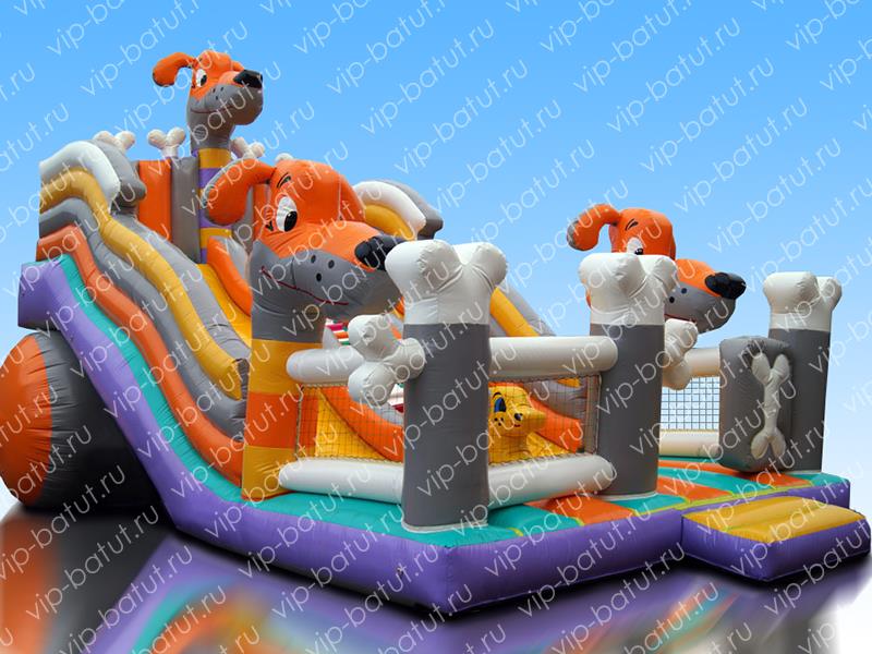 • Надувная игрушка у подножия широкой горки, порадует малышей,с ней они смогут поиграть, отдыхая от спусков и подъемов.