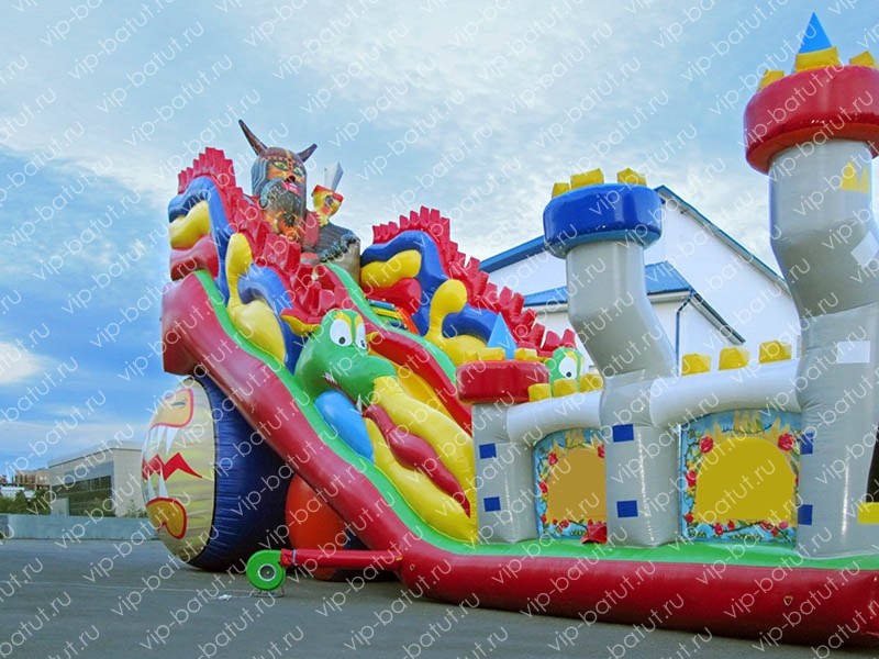 Качественно оформленная надувная горка с батутом «Вековой воин», яркая и колоритная. Оригинальное исполнение в лучших традициях компании Vip-batut безусловно оценят все клиенты и посетители данного комплекса. Необычно выполненный вход, надувная крепость в виде башен средневековых замков, увлечет ребят в увлекательную игру. Боковые перила, оформлены в виде двух массивных огнедышащих драконов, которые извергают свое пламя. А на самом верху надувной горки, находится огромный и бесстрашный воин, что неординарно дополняет общую тематику данного надувного комплекса. Волнообразный спуск со стартовой высотой площадки, сделает скольжение еще более захватывающим. В каждом этапе изготовления наши профессионалы используют качественные и прочные нити, а также немецкую пвх-ткань. Данная модель может быть доставлена во все города и регионы России : Москва,Нижний Новгород,Санкт-Петербург, Оренбург, Волгоград, Екатеринбург, Воронеж и другие. Мы предоставляем гарантию на надувные изделия, а также техническую помощь. Все возникшие вопросы технического характера, Вы без труда сможете уточнить у наших менеджеров.