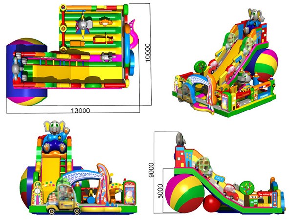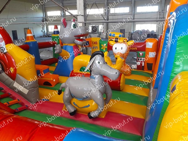 • Надувные игрушки: автомобиль, ослик, жираф и слоненок, интересны каждая по-своему. На одних можно прокатиться, на другие – залезть и прыгнуть на батут, одним словом, без дела не останется ни один посетитель комплекса.