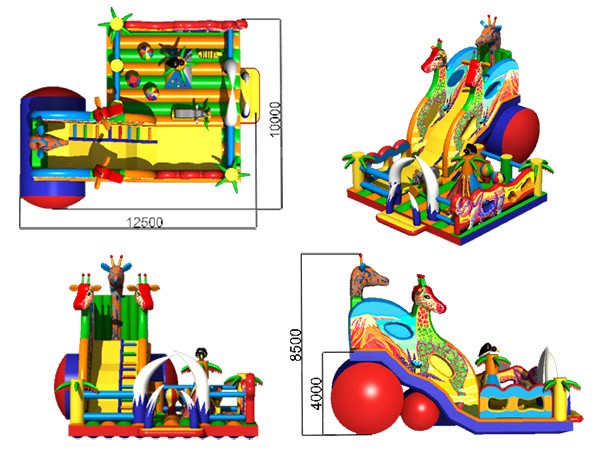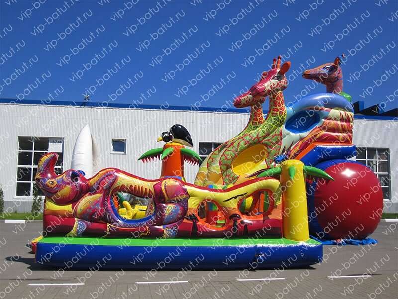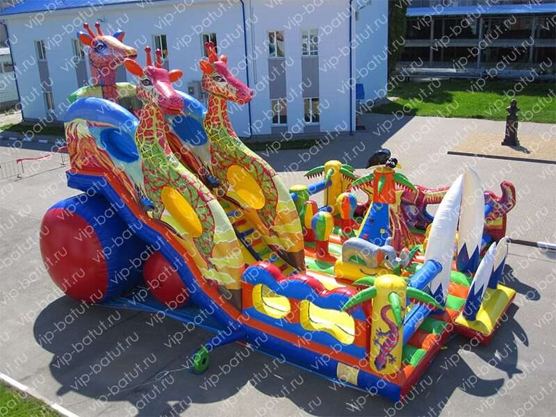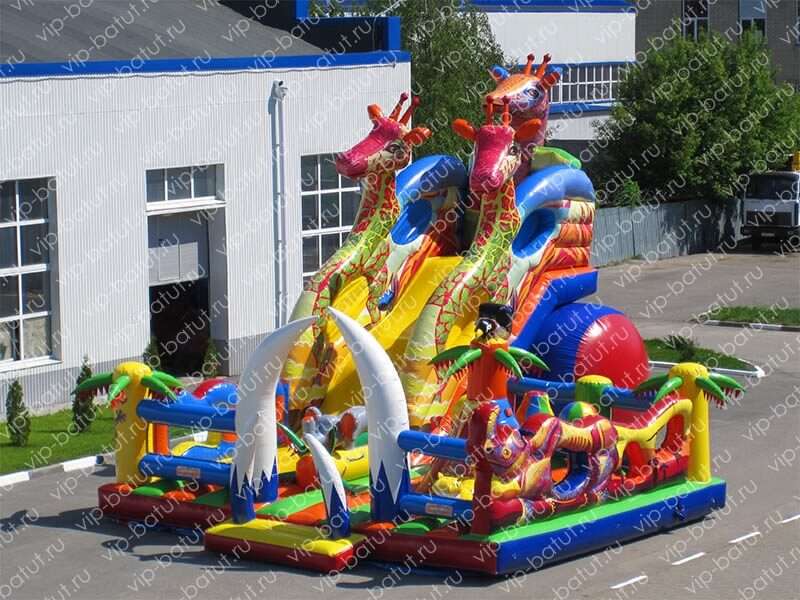 Многофункциональный батутный комплекс для детей, в тематике экзотических животных — абсолютный хит этого сезона! Яркий, колоритный надувной батут — несомненная радость для ребят. Надувная горка,которая имеет стартовую высоту 4.0 метра, подарит веселое скольжение, а разноцветные добродушные жирафы, будут сопровождать детей в увлекательной и интересной игре на батуте. Необычно оформленный вход на аттракцион, оригинальные игровые элементы — наш творческий коллектив постарался,чтобы порадовать юных посетителей. Качественно выполненные принты, с изображениями животных Саванны, всецело дополняют стиль и образ надувного изделия. Прочность ткани, из которой изготовлен надувной аттракцион, составляет 650 г/м, что значительно повышает качество и долгосрочность данного изделия. Купить надувной аттракцион, совершить заказ и обсудить необходимые вопросы — все это осуществляется у нас на сайте. При желании, напишите нашему менеджеру или же, непосредственно, звоните по номерам указанным на веб сайте. Доставка по всей России: Москва, Екатеринбург, Воронеж, Тюмень, Ростов-на-Дону и другие регионы РФ. Мы с радостью поможем Вам выбрать надувное изделие, а также дадим ответы на все вопросы касательно наших изделий.