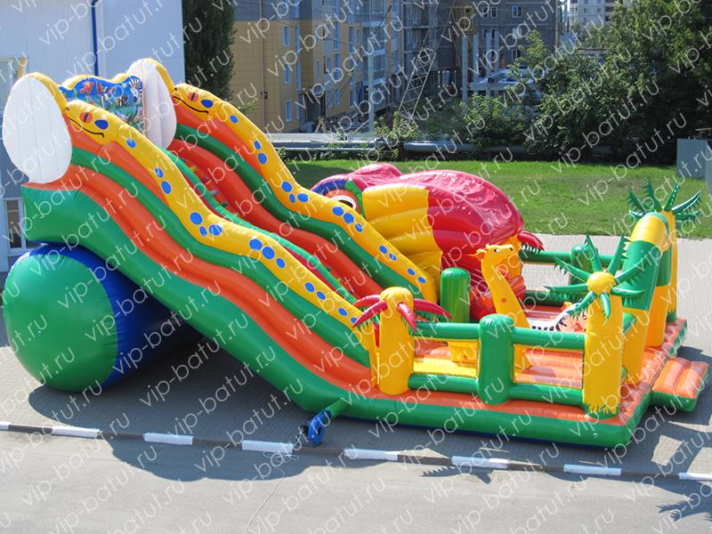 • Надувной жираф у подножья горки, по высоте почти не уступает своему живому прототипу – залезайте и катайтесь!