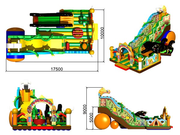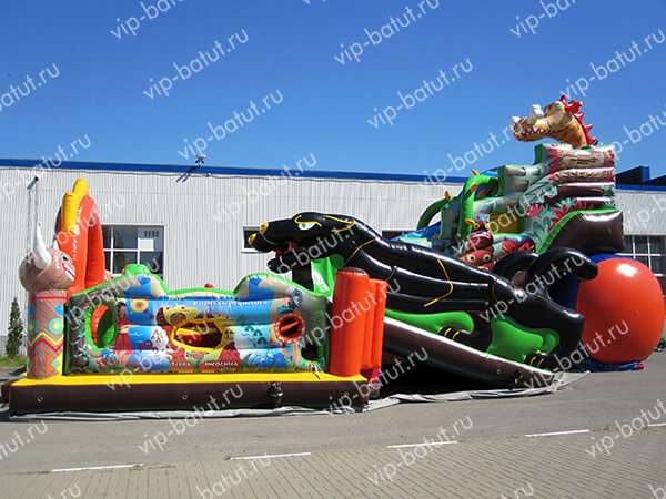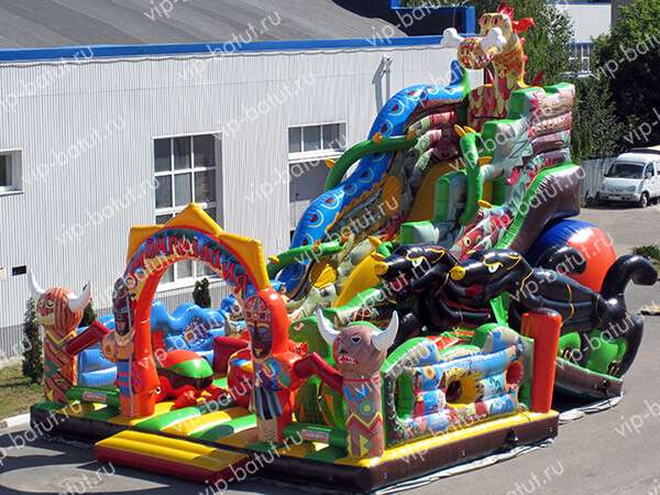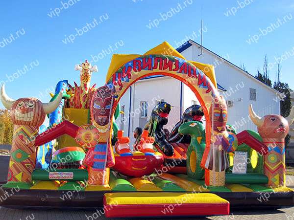 Не зря Ваш взгляд остановился на этом батутном аттракционе «Цивилизация», ведь это гениальное и оригинальное творение инженерной мысли, имеет в своем составе пневморобота — фишка этого сезона, модное и креативное решение дизайнеров и конструкторов. Ритмичные движения робота выделяют представленный батутный комплекс динамикой, легкостью, подвижностью. Задумка творческого коллектива состоит в том, что полностью выдержана стилистика и тематика батутного аттракциона. Применяются новые технологии — фотопечать на перилах и на внешних столбах. Стоит обратить внимание, что это совершенно эксклюзивная и оригинальная, неповторимая работа дизайнера. Огибающие перила лианы — конструкторская идея, которая не просто дополняет общую привлекательность надувной горки, но и по-прежнему делает спуск безопасным и впечатляющим. Конструкция дополнена окнами,через сетку не только удобно контролировать детей, но и фотографировать их. «Цивилизация» охватывает за счет своих игровых элементов, расцветки и общей идеи, наиболее широкий пласт возрастной категории детей, по этому надувной аттракцион пользуется спросом. Сделано изделие из немецких материалов по новейшей технологии. Производство контролируется и тестируется на каждом его этапе. Оформить заказ и доставку по России от российского производителя можно прямо сейчас! Спешите сделать прибыль приятной!