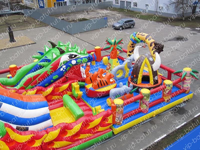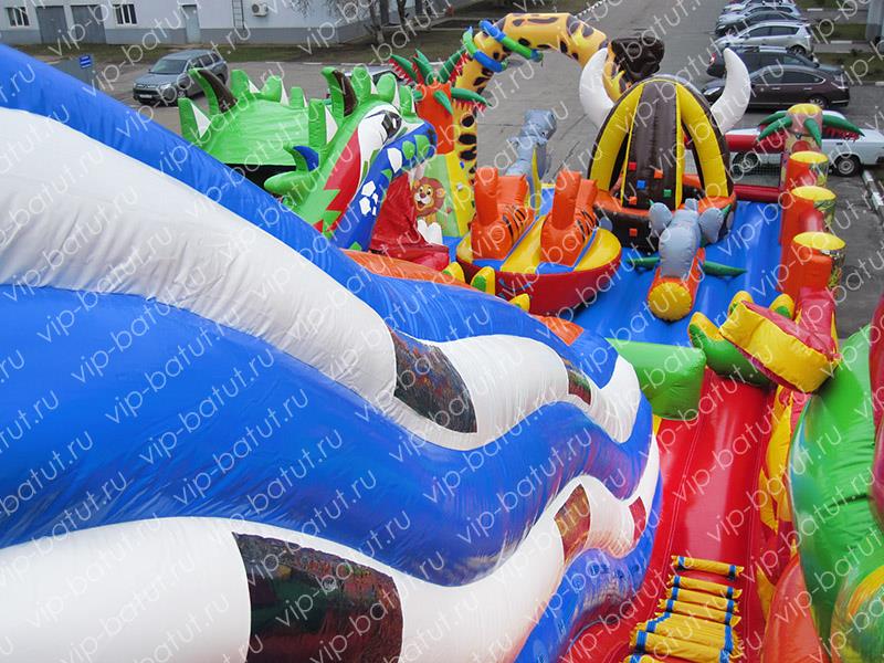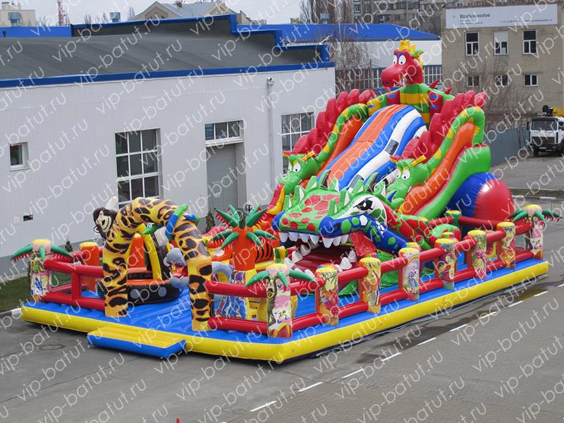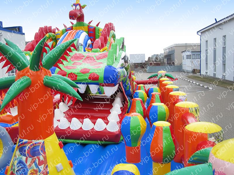 Инновационная разработка наших креативных дизайнеров и конструкторов, фантастический, красочный, уникальный надувной комплекс, удивит детвору масштабностью, насыщенным, разнообразным игровым наполнением. Современный, многофункциональный игровой комплекс ,вместил на своей огромной развлекательной площадке все самые любимые развлечения малышей. Пневморобот ,с подвижной челюстью-лифтом нравится всей детворе, горка-робот для детей, привлекает маленьких озорников своей уникальной конструкцией, кататься с горочки, попадая внутрь робота, нравится всем малышам. Большая надувная горка с волнообразным спуском, находится в тоннеле, который укроет малышей от солнца, а скоростной спуск подарит массу позитивных эмоций и хорошее настроение. Яркая, большая голова дракона, украшает заднюю стенку аттракциона, две другие головы, расположены на фигурных боковых перилах. Эксклюзивный домик с сухим бассейном будет самым любимым местом времяпровождения маленьких непосед, барахтанье детворы в разноцветных шариках, оказывает массаж всего тела, благоприятно влияет на физическое развитие детей, их эмоциональное состояние, настроение. Все малыши буду ощущать комфорт, уют, задержатся на долгое время прыгать, играть на надувном батуте. Наша новая модель надувного аттракциона, прекрасно себя зарекомендует в скверах, парках семейного отдыха, на берегу моря, набережных, открытых площадках, торгово-развлекательных центров. Станет популярным местом отдыха у детворы. Купить надувные батутные комплексы от производителя, сделать правильный шаг в сторону развития своего развлекательного бизнеса. В нашей компании Вы получите изделие очень высокого качества по приемлемой цене.