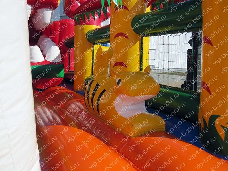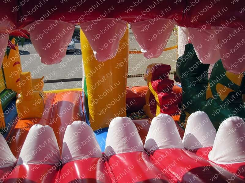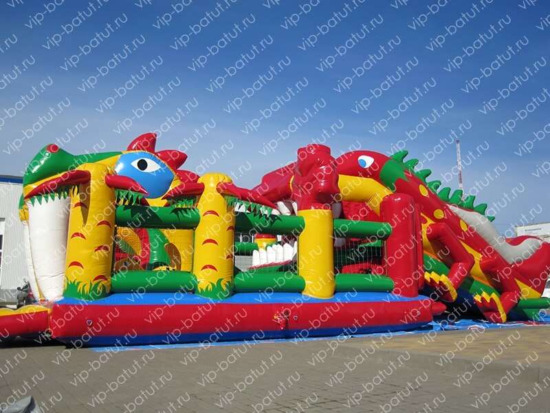 Современный надувной батутный комплекс от производителя, понравится ребятам любого возраста. Надувная игровая площадка ,включает в себя сказочного ящера годзилу, в пасти которого можно весело резвиться, скользить с горки и прыгать на мягком матрасе. Челюсть-лифт имеет автоматический режим, периодично закрывается и открывается. Ребятам обязательно будет любопытно побывать внутри горки-робота. Малышам также понравится веселиться в бассейне с шариками, которые оказывают массажное действие для ребенка. Площадка с шариками имеет сетку для безопасности ребят, а также, чтобы игровая зона легко просматривалась. Каждому ребенку будет интересно исследовать пневмоаттракцион. Надувной комплекс ярко украшен качественной аппликацией и отлично подойдет для оборудования территории парка развлечений, пляжа, набережной зоны, кафе, игровых комнат для детей. Низкая цена и отличное качество — главный показатель наших надувных батутных комплексов для детей. Сотрудничество с компанией «Vip-Batut» ,поможет вам в прибыльном развитии бизнеса.В нашей компании самые оптимальные цены на батутные аттракционы.