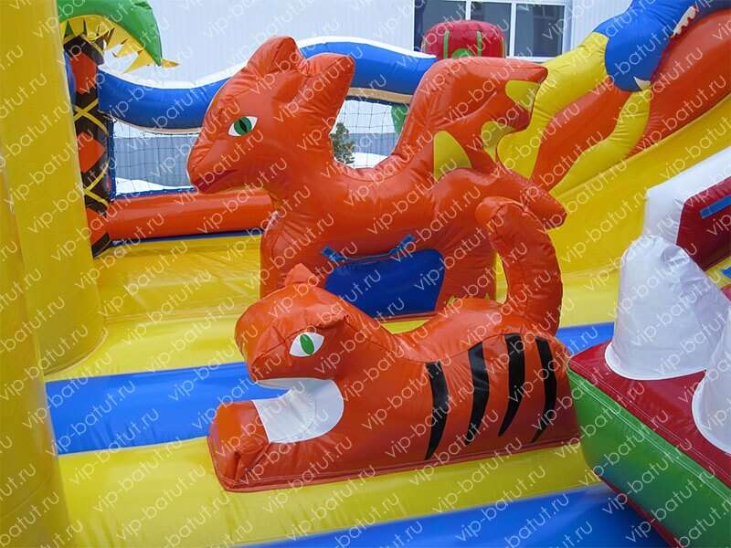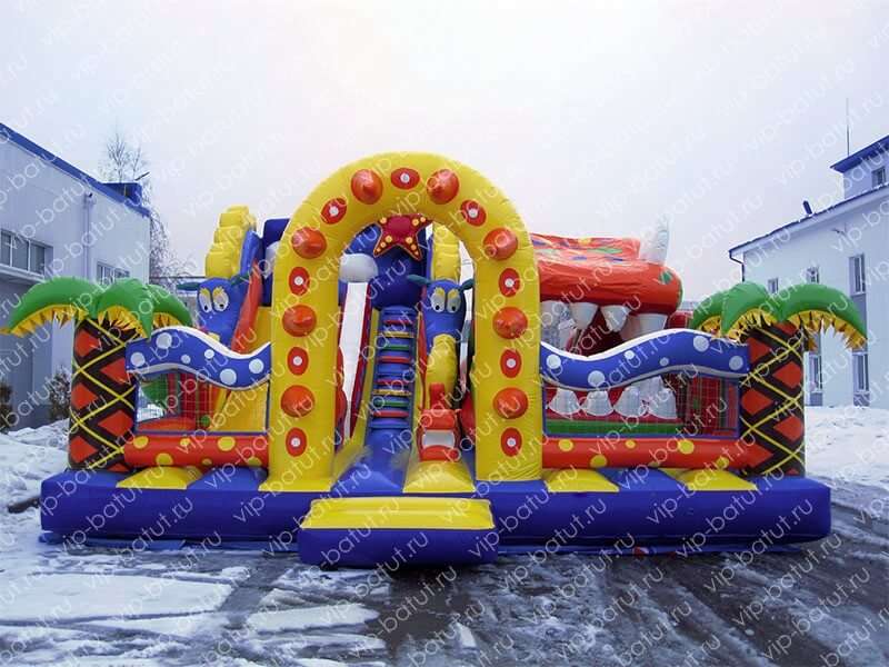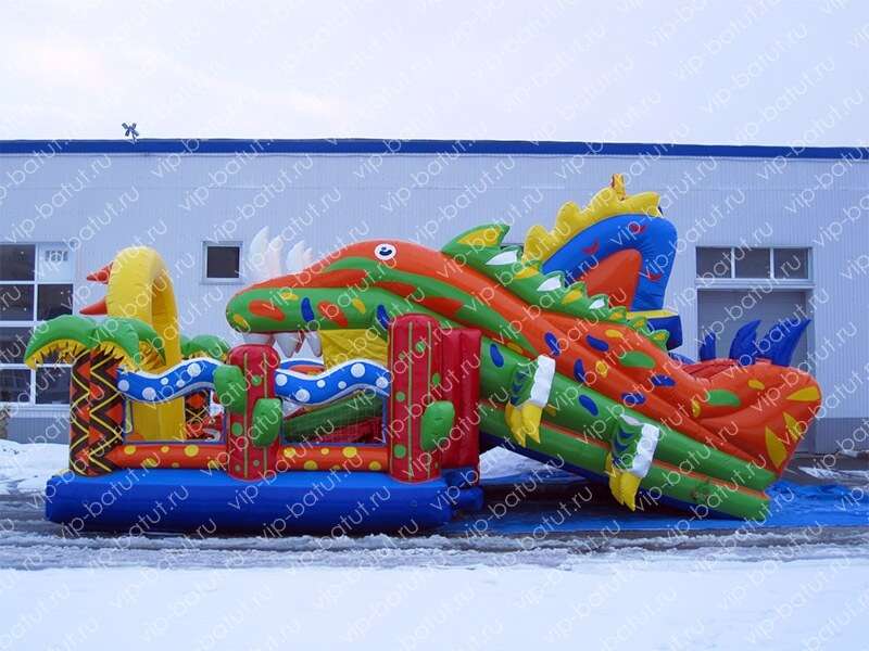 Надувной игровой комплекс «Малибу»— это отличное приобретение для вашего парка развлечений. Надувной аттракцион сразу же привлечет внимание маленьких озорников своим ярким оформлением и интересной игровой площадкой. Батутный комплекс состоит: из надувной горки и веселого пневморобота-динозаврика. Боковые стенки игровой площадки имеют защитные сетки, чтобы дети могли безопасно резвиться и наслаждаться игрой. С помощью ярких ступенек детвора сможет быстро и ловко подниматься наверх и весело скользить по мягкой надувной горке. Играя и балуясь, озорники улучшают свою координацию движений, развиваются творчески и физически. Цена детского надувного комплекса для игр, удивит доступностью, а качество порадует своей прочностью и долговечностью. Купить надувной аттракцион от производителя — уверенность в прибыльном развитии вашего бизнеса. Использование только высококачественных материалов позволяет нашим изделиям прослужить вам как можно дольше. Будьте уверены, наше сотрудничество принесет вам прибыль,а ребятам, положительные эмоции и отличное настроение.