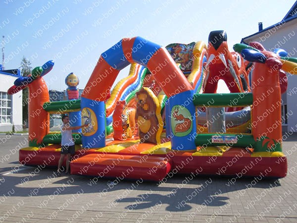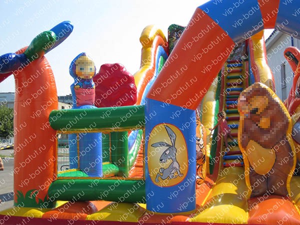 В продолжение серии многофункциональных надувных аттракционов на тематику широко известного, любимого всеми детьми и самого популярного мультфильма, наши креативные конструктора, разработали кардинально новую модель. Батутный комплекс «Машина сказка 3» позволит малышне испытать ещё больше удовольствия от скоростных спусков с горки и прыжков на надувном батуте. Очутившись на батутной площадке, детвора встретится с главными героями, красочные фигуры которых, размещены на матрасной части аттракциона, незабываемые и яркие приключения ждут всех детей. Здесь можно прыгать на надувном батуте и играть со сказочными героями, кататься с горки по скоростному волнообразному спуску, исследовать пневморобота с подвижной челюстью-лифтом, работающей в автоматическом режиме. В оформлении применяется красочная аппликация и яркая полноцветная печать. Креативное ограждение надувного аттракциона, делает дизайн комплекса уникальным, неповторимым. Фигурные столбы создают атмосферу сказочного леса, где очень любят гулять главные герои. Необычные деревья, большие цветы, привлекают внимание не только детей, но и взрослых. Между столбами для безопасности детворы натянута сетка, через которую прекрасно просматривается вся территория развлекательного аттракциона, это является большим преимуществом, позволяя родителям контролировать игры своих чад во время пребывания на игровом комплексе. Рациональное распределение игровой зоны, обеспечивает большую пропускную способность пневмоаттракциона. Наш современный детский надувной комплекс будет лидером по количеству посетителей, самым популярным местом для отдыха детей в скверах, парках, на набережной, пляже, любой открытой территории ресторана, кафе, торгового центра. Купить надувной комплекс от производителя Vip-batut, замечательная возможность обеспечить развитие и процветание своего бизнеса. Постоянно дарить море счастья, радости, хорошего настроения детишкам разного возраста.