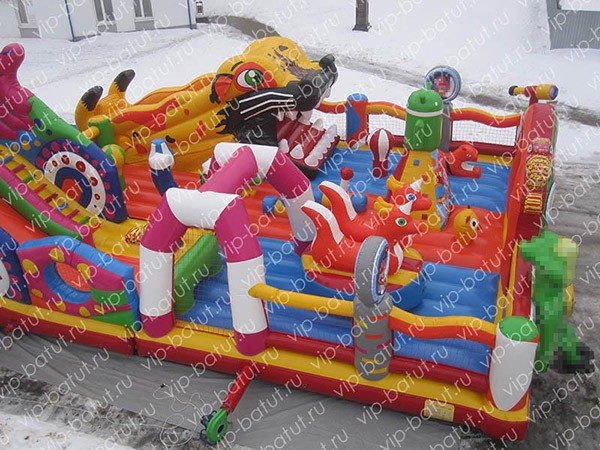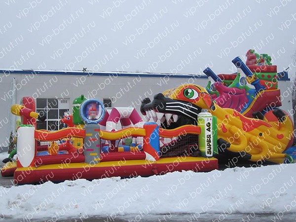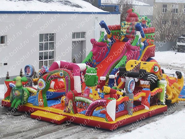 Надувной уличный комплекс с каскадной горкой и пневматическим роботом