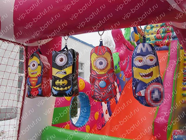• 4 подвесных фигурки желтых карапузов (каждый из них – в костюме супергероя из комиксов). Очень интересно устроить соревнование – кто выше подпрыгнет или кто сможет за один прыжок дотронуться до всех фигурок сразу?