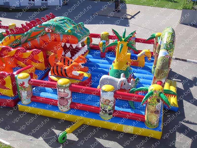 Наш конструкторский состав хорошо постаралcя, чтобы создать этот большой надувной комплекс для детей «Саванна-макси». Многофункциональность батутного комплекса, позволит ребятам получить максимум отличного настроения, придумать для каждого свою роль, фантазировать и развлекаться, прыгая на мягкой поверхности. Пневморобот- дракон, дополняет аттракцион, увлекая малышей в увлекательную игру. Надувная горка с могучими огнедышащими драконами, будет излюбленным местом для ребят, где можно весело кататься, приземляясь на мягкую батутную часть. Удобное расположение игровых зон и наличие игровых элементов понравятся детям и они будут приходить сюда снова и снова. Удивительный мир саванны порадует своим ярким и необычным оформлением. Вы можете купить надувной комплекс для игр и быть уверены, что сделали правильный выбор для вашего успеха в бизнесе. Мы, компания «Vip-Batut», стараемся для вас и для организации комфортного отдыха маленьких посетителей. Надувной игровой комплекс для детей ,отлично дополнит ваш парк аттракционов.