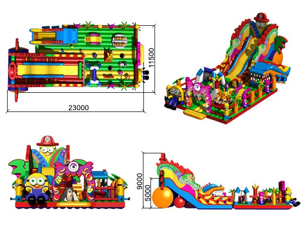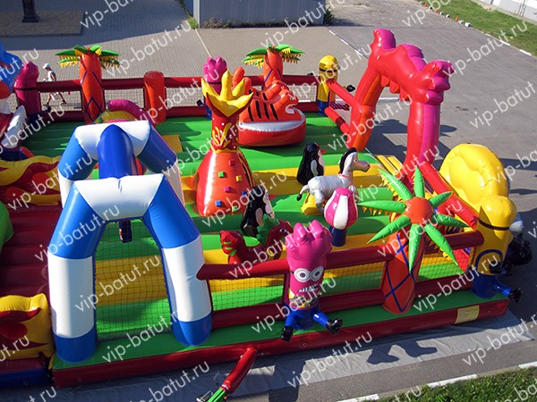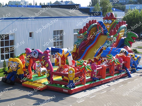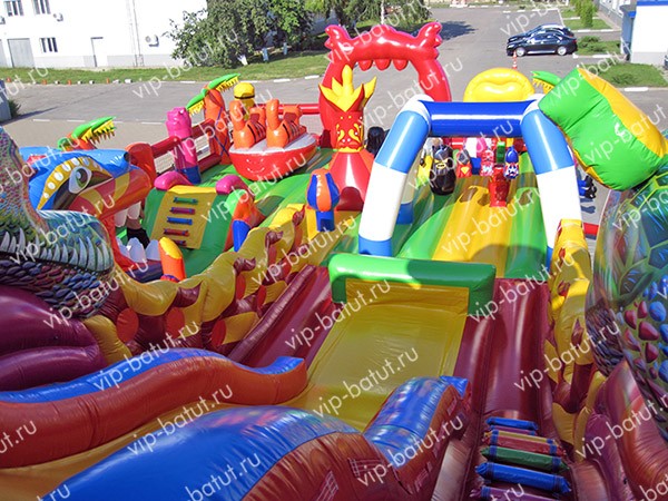 Говоря о масштабном надувном комплексе, мы ничуть не преувеличиваем – вы только представьте себе: аттракцион, площадью более 280-ти квадратных метров. Да это же целый «детский мир»! В какой-то степени, так и есть: пневматический робот, горки, «игровушки», «прыгалки», «скалодром»… Действительно, есть чему порадоваться и чем заняться детворе: