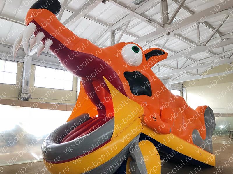 Малыши любят надувные аттракционы в форме знакомых персонажей – элемент узнавания всегда важен и приятен. Поэтому к новому пневматическому роботу непременно выстроится длиннющая очередь из поклонников отличного мультфильма. И когда закругленная саблезубая пасть откроется, все наперегонки залезут внутрь. Теперь начинается самое интересное – компрессор нагнетает воздух в нижнюю челюсть робота и она закрывается, превращаясь в настоящую надувную горку.