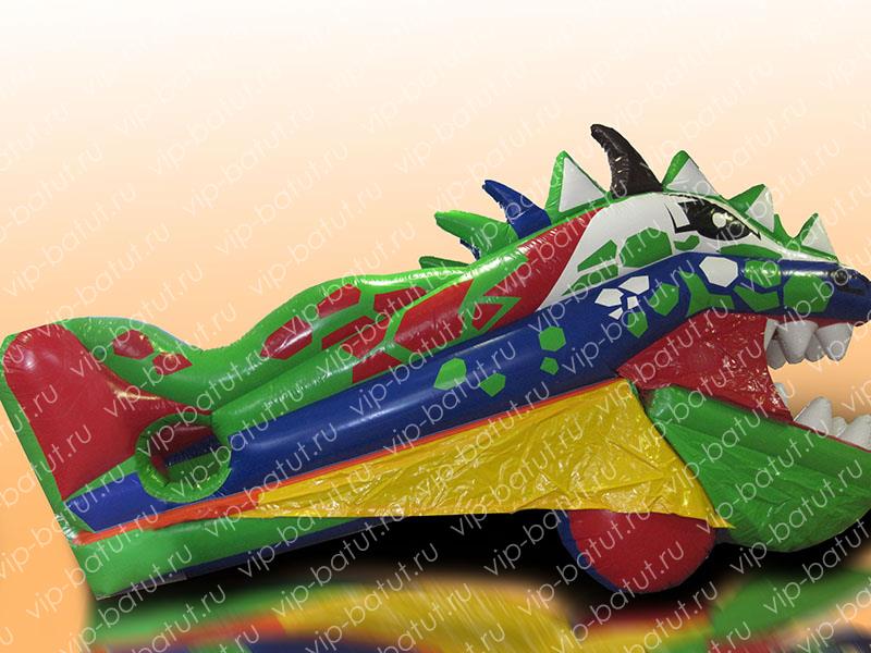 Надувной робот-батут в виде огромного дракона с белыми клыками и треугольным гребнем вдоль спины – замечательный, современный батутный аттракцион. Детишки очень любят подвижные игрушки, а надувные роботы совмещают в себе игрушку гигантского размера, настоящую горку и механизм, приводящий конструкцию в движение. За работу аттракциона отвечает компрессор, поставляемый покупателю робота, вместе с изделием.